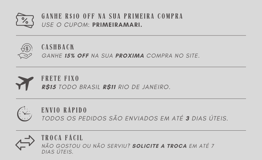 90% Poliamida/ 10% Elastano/ Forro da calcinha: 100% algodão.